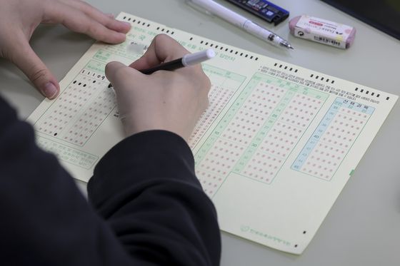 2026학년도 대학수학능력시험 6월 모의고사가 열린 4일 오전 서울 광진구 광남고등학교에서 3학년 학생들이 OMR카드에 마킹을 하고 있다. 사진공동취재단
