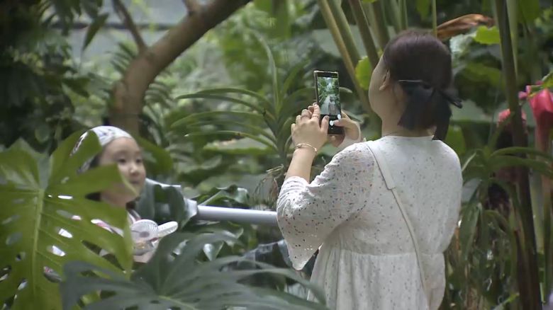 시민들은 식물뿐만 아니라 자연과 예술의 공존을 주제로 한 전시를 감상하며 휴일을 보내고 있습니다.