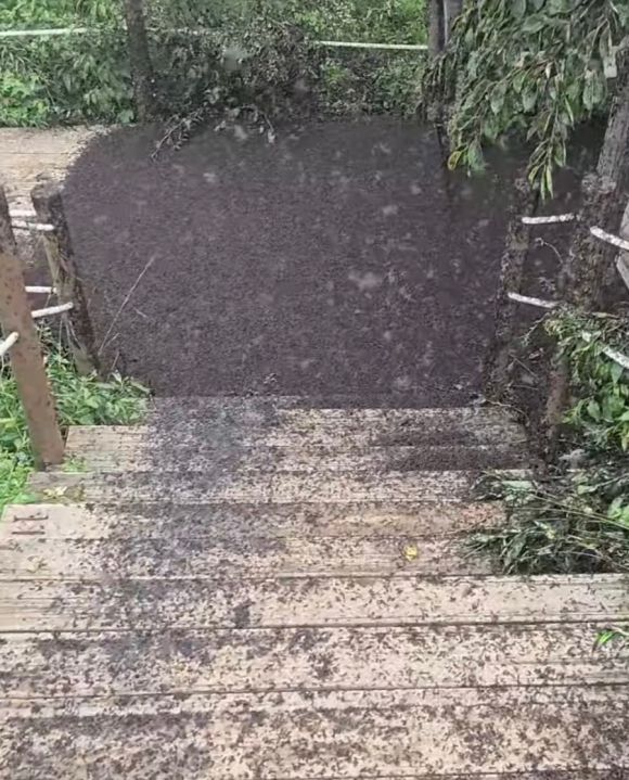 특히 특정 ‘계단참’(층계의 중간에 있는 넓은 곳)에 러브버그 시체가 쌓여 시커먼 아스팔트처럼 보인다는 게 등산객들의 전언이다.