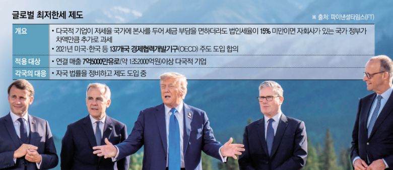 FT는 이 조치는 G7 회원국들이 주도하고 있는 경제협력개발기구(OECD)에서 향후 몇 주 내로 논의될 예정이라고 소식통을 인용해 전했다. 앞서 OECD는 조 바이든 전 미국 행정부 시절인 2021년 미국과 한국을 포함해 137개국의 합의를 이끌어 내며 글로벌 최저한세 체제를 마련했다. 다국적 기업의 세금 회피 방지를 위해 본사 소재지와 상관없이 최소 15%의 세율을 적용하도록 한 것이다. 애플·메타·아마존 등 미국 IT 기업들이 주요 대상이 될 것으로 관측됐다.