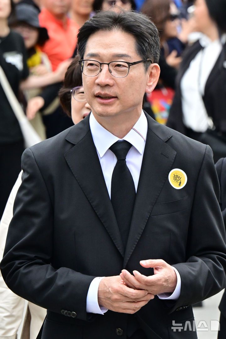 [김해=뉴시스] 차용현 기자 = 김경수 더불어민주당 총괄선대위원장이 23일 오후 경남 김해시 봉하마을에서 열린 고 노무현 전 대통령 16주기 추도식에 참석하고 있다. 2025.05.23. con@newsis.com |