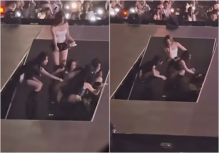 공연 도중 무대 사고가 발생했다. 리프팅 무대가 내려가던 중 한쪽으로 기울어졌고, 당황한 멤버들은 자세를 낮춰 천천히 무대 아래로 내려갔다.