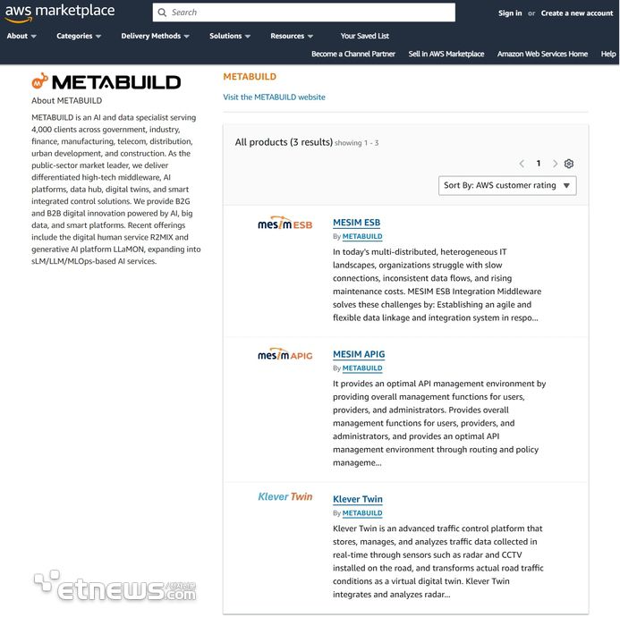 메타빌드, AI연계 SW AWS 마켓플레이스 등록