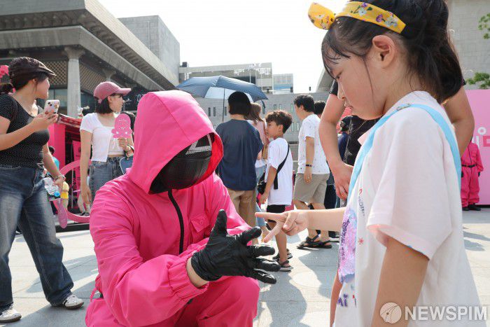 [서울=뉴스핌] 김학선 기자 = 29일 서울 광화문 광장에서 열린 '2025 K-콘텐츠 서울여행주간 : 오징어 게임 팝업 광화문' 행사를 찾은 어린이들이 게임을 하며 즐거운 시간을 보내고 있다. '오징어 게임 팝업 광화문'은 내달 6일까지 열리며 현장에는 오징어 게임 속 상징적인 요소들을 체험할 수 있는 다양한 포토존과 전시, 미니 게임 등이 마련돼 있다. 2025.06.29 yooksa@newspim.com
