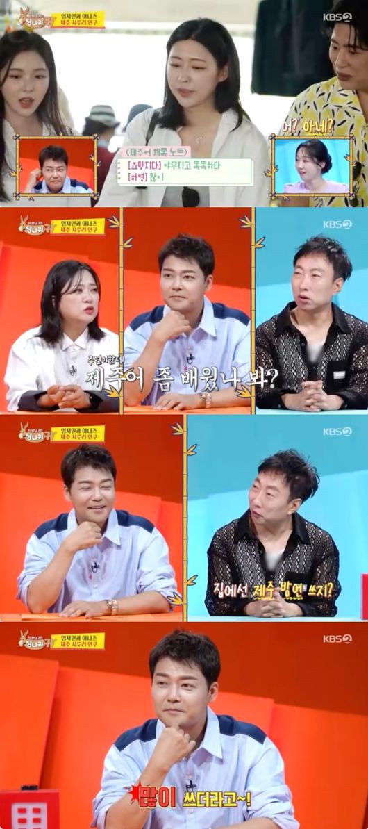 29일 오후에 방송된 KBS 2TV 예능프로그램 ‘사장님 귀는 당나귀 귀’에서는 7월 한국어 포스터를 만들기 위해 제주도로 향한 엄지인, 홍주연, 정은혜, 김진웅의 모습이 담겼다.