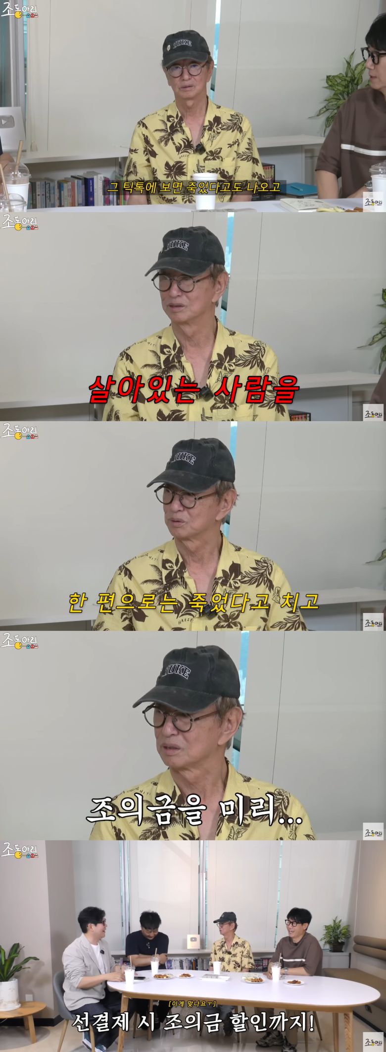 전유성은 "요즘도 술 한 잔씩 하시냐"라는 말에 "내가 많이 마르지 않았나. 틱톡에 죽었다고도 나오더라. 미친 사람들, 할 게 없어서 살아있는 사람을. 열받기도 했는데 한편으론 죽었다고 치고 조의금을 미리 보내줘서 "라고 말을 흐려 웃음을 안겼다.
