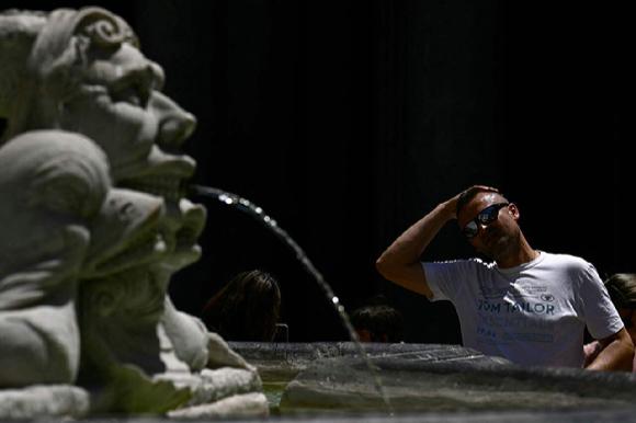 이탈리아 로마의 한 분수대에서 물로 머리를 식히는 관광객. [사진=AFP 연합뉴스 ]