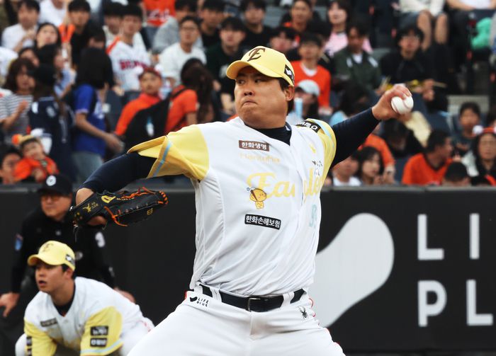한화 류현진이 대전 한화생명 볼파크에서 열린 2025 KBO리그 두산전에 선발 등판해 역투하고 있다. 사진 | 대전=연합뉴스 |