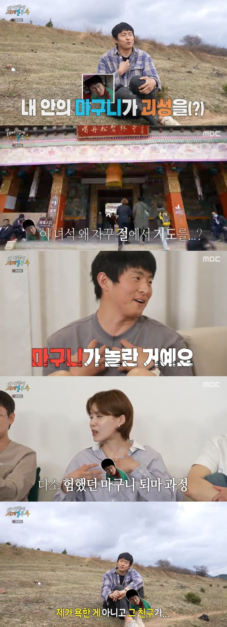 기안84는 "성스러운 곳에 오니까 마구니가 놀란 거다"라고 말했고, 장도연은 "오체투지 전에 마구니를 뱉어냈다"라고 거들었다.