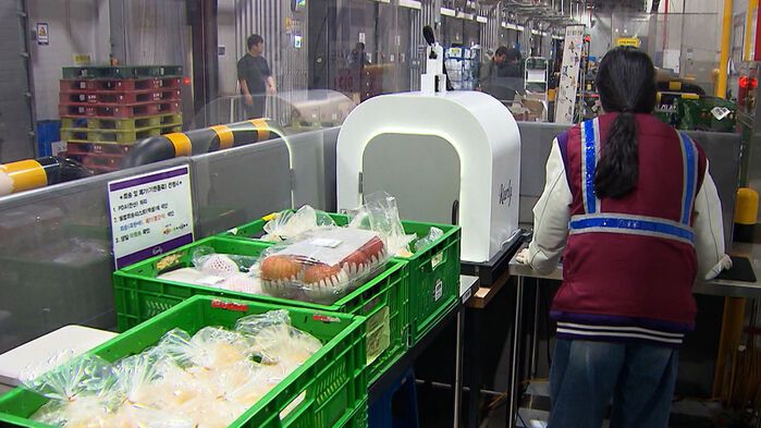신선식품 중 30%를 샘플로 선별해 상태를 확인하는데, 색상과 변질 정도, 흠집 등 최대 25개 항목을 AI가 점검합니다.