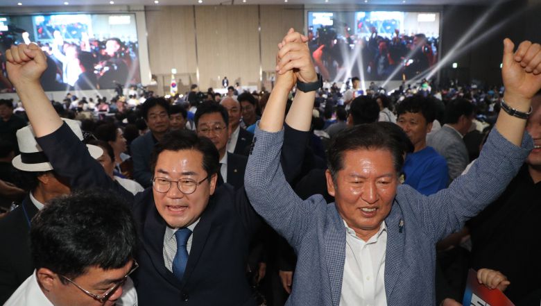 정·박 두 의원은 그동안 당내 강경 노선을 대변해 왔다. 박 의원은 원내대표 시절 윤석열 정부 공직자들의 탄핵소추안을 비롯해 여러 논쟁 법안을 강행 처리했다. 정 의원은 국회 법제사법위원장으로 공직자 탄핵 청문회를 열었고, 쟁점 법안을 법사위에서 일방 처리하며 당에 보조를 맞췄다. 두 의원 모두 수시로 당내 이재명 대통령의 강성 지지층인 ‘개딸’에 동조하는 발언을 해왔다. 강경파 의원 둘이 출마한 탓에 이들의 강성 경쟁, 나아가 ‘찐명 경쟁’은 더 치열해지고 있다. 두 사람 중 누가 대표가 되든 집권 여당이 국민 전체를 바라보는 정치를 하게 될지 걱정하게 만든다.