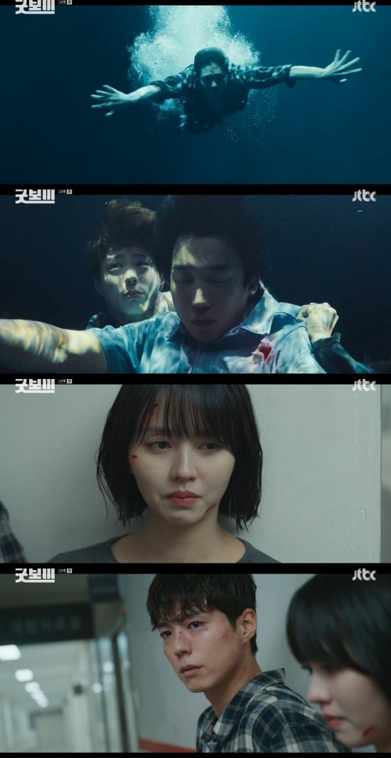 29일 방송된 JTBC 토일드라마 '굿보이' 10회에서는 윤동주(박보검 분)가 김종현(이상이)을 구하기 위해 물에 뛰어든 모습이 그려졌다.