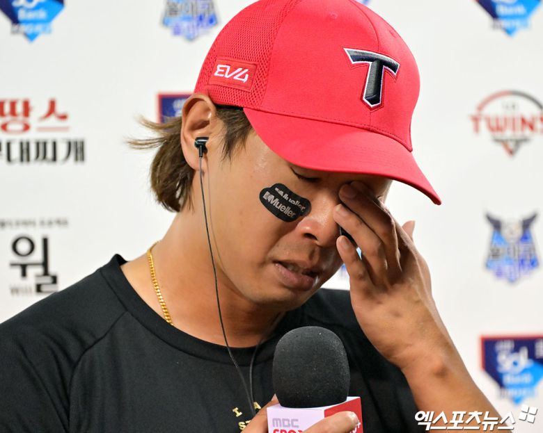 (엑스포츠뉴스 잠실, 유준상 기자) 팀을 승리로 이끈 KIA 타이거즈 외야수 고종욱이 아내를 떠올리다가 눈물을 쏟았다.
