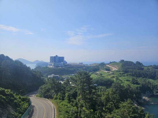 디럭스 오션뷰 평형 객실 내 테라스에서 바라본 풍경. 박재현 기자