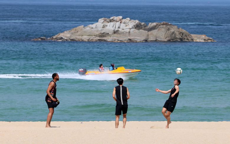 지난달 강원 강릉시 경포해변을 찾은 관광객들이 백사장에서 공놀이하고 있다. 연합뉴스 |