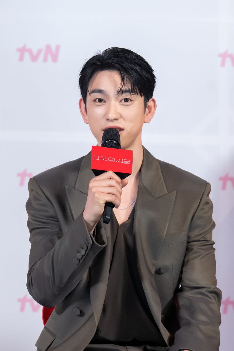 배우 박진영이 지난달 21일 열린 tvN 토일드라마 '미지의 서울' 제작발표회에 참석해 취재진의 질문에 답하고 있다. tvN 제공. |