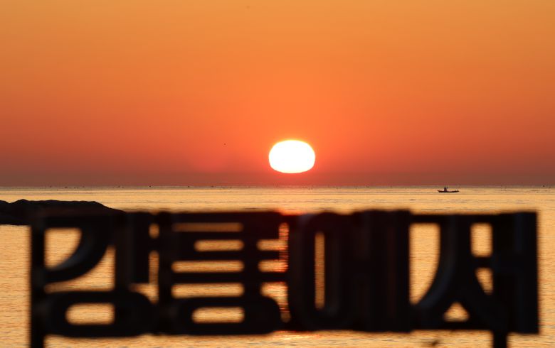 강릉과 삼척 등에 폭염경보가 내려진 30일 강릉시 경포해수욕장 앞바다에서 붉은 솟아오르고 있다. 연합뉴스 |