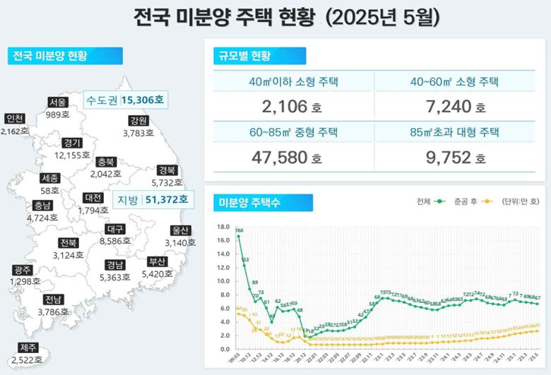 30일 국토교통부가 발표한 5월 주택통계에 따르면 준공 후 미분양은 2만7013호로 전월 대비 2.2% 증가했다.