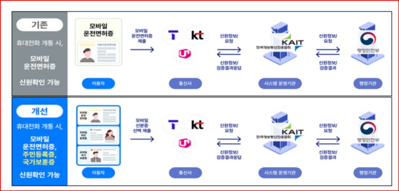 그동안은 모바일 신분증으로 개통(신규가입, 번호이동, 명의변경 등)하려면, 모바일 운전면허증만 사용할 수 있었으나 이번 조치를 통해 모바일 주민등록증과 모바일 국가보훈등록증도 사용할 수 있게 됐다.