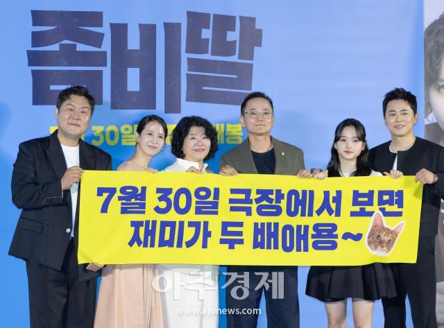 [사진=유대길 기자 dbeorlf123@ajunews.com] 30일 오전 서울 용산구 CGV 용산아이파크몰에서 열린 영화 '좀비딸' 제작보고회에 감독과 출연 배우들이 참석해 포즈를 취하고 있다.사진 왼쪽부터 윤경호, 조여정, 이정은, 필감성 감독, 최유리, 조정석. 2025.06.30 아주경제=유대길 기자 dbeorlf123@ajunews.com - Copyright ⓒ [아주경제 ajunews.com] 무단전재 배포금지 -이 기사의 카테고리는 언론사의 분류를 따릅니다.0공유하기