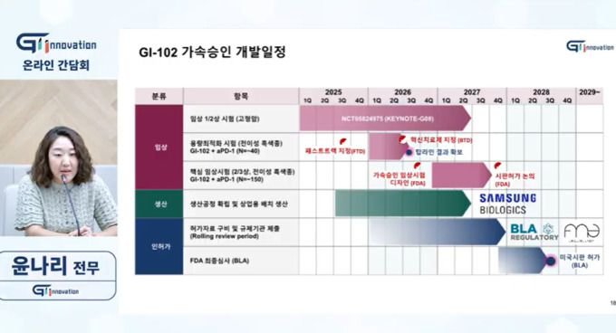 [서울=뉴스핌] 김신영 기자 = "2028년 FDA로부터 면역항암제 GI-102의 가속 승인을 받는 것이 목표입니다."