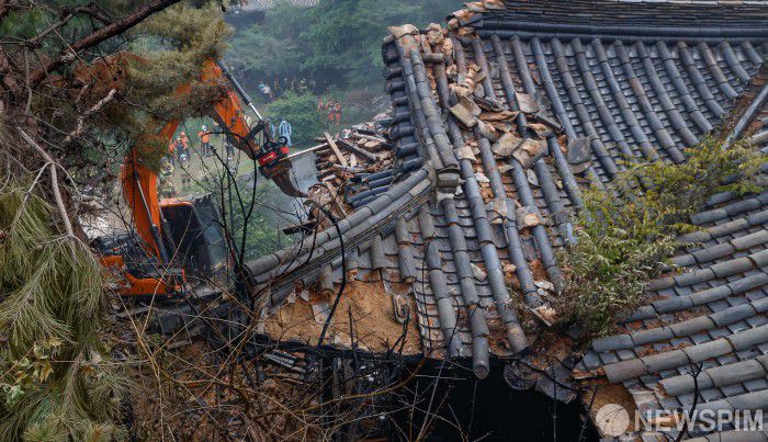 [서울=뉴스핌] 류기찬 인턴기자 = 30일 오후 서울 성북구에 있는 문화유산 ‘성북동 별서’에서 화재가 발생해 소방 당국이 진화에 나섰다. 소방 당국은 차량 29대와 인력 112명을 현장에 투입하고, 오후 1시 43분경 대응 1단계를 발령했다. 이날 별서에서 소방관들이 화재를 진압하고 있다. 2025.06.30 ryuchan0925@newspim.com |
