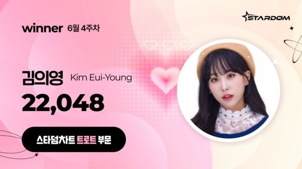 한편 스타덤 차트는 6월 4주차부터 아이돌 부문, 트로트 부문, 음원 부문, 배우 부문 등 4개 부문으로 개편했다. 김의영은 스타덤 차트 개편 이전에 진행했던 '최애 트롯스타' 여자 부문에서 6월 3주차까지 15주 연속 1위를 차지한 바 있다.