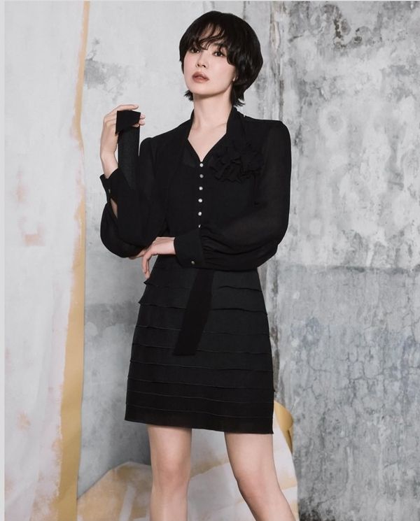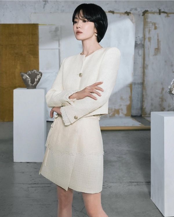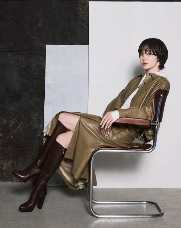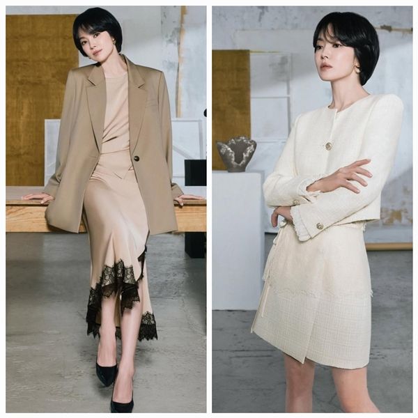 공개된 사진에서는 가을의 광택을 닮은 레더 셋업부터, 겨울을 품은 크림 트위드, 모던한 블랙 셔링 원피스, 그리고 따스한 브라운 슬릿 드레스까지 총 4가지 룩을 완벽하게 소화했다. 특히 각기 다른 소재와 톤에서도 느껴지는 공통점은 단 하나였다. ‘송혜교는 어떤 의상도 송혜교답게 만든다’는 점이었다.