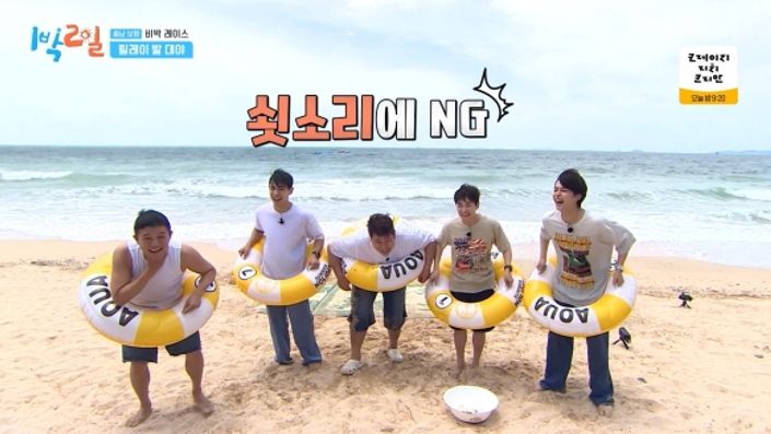 이날 첫 번째 미션을 마친 멤버들은 해수욕장으로 이동해 '숨 참고 다이브' 게임을 진행했다. 이준을 제외한 모든 멤버들이 물에 빠지며 비박 용품을 1개 얻는 데 그쳤다. 이어진 진행된 두 번째 대결에서는 상대팀에서 2명이 빠지면서 '1박 2일' 팀이 인원수 어드밴티지를 활용해 승리하며 에어 매트와 간이침대까지 확보한 채 베이스캠프로 향했다.