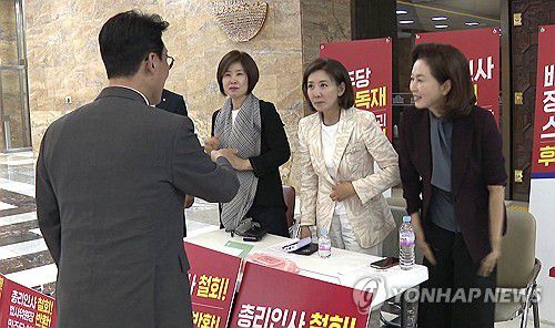 이날 나 의원은 농성장에서 기자회견을 열고 김 후보자 지명과 관련해 "범죄 혐의자에 대한 검찰 수사가 본격화하는 상황에서 대통령 측근이라는 이유로 총리직에 앉히겠다는 발상은 결국 '대통령 리스크 방탄 내각'을 구축하겠다는 의도로밖에 보이지 않는다"고 주장하며 지명 철회를 촉구했다.