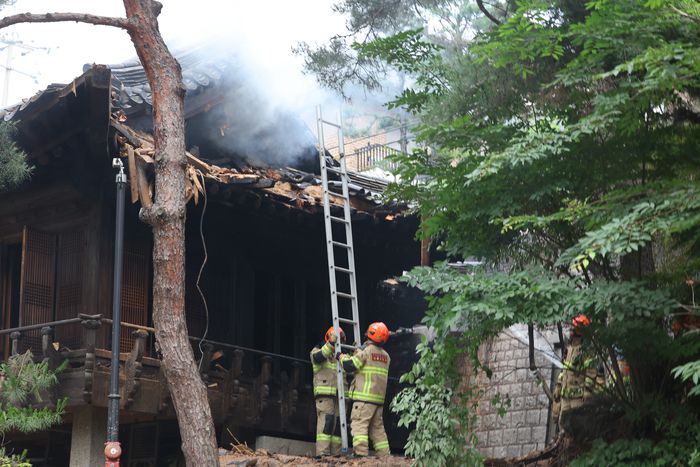 30일 오후 서울 성북구 성북동 소재 문화유산 성북동 별서에서 발생한 화재가 약 3시간 8분만에 진화됐다.