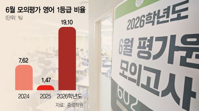 2026학년도 대학수학능력시험 6월 모의평가에서 영어 1등급(원점수 90점 이상) 비율이 20%에 육박한 것으로 집계됐다. 영어 영역이 절대평가 과목으로 지정된 후 최고치다. 변별력 확보에는 실패한 셈으로, 9월 모의평가와 올해 수능에서는 6월 모의고사보다 어려운 문항들이 출제돼 1등급 비율이 줄어들 가능성도 커졌다. 이에 따라 6월 모의고사 성적으로만 수능 최저 기준 충족 여부를 확인하기 어려워져 수시를 준비하는 수험생들이 어려움을 겪을 수 있다는 우려의 목소리가 커지고 있다.