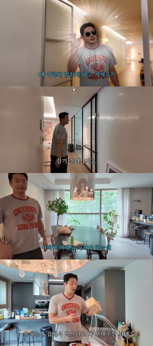 권상우는 긴 복도를 지나 거실로 들어갔고, 어마어마한 크기의 거실과 모던한 인테리어가 눈길을 끌었다. 권상우는 며칠째 감기로 고생 중이라며 “코로나 아니다. 5일 동안 앓아누웠다. 목이 잘 안 나온다”라고 설명했다. 홀로 감기와 싸운 권상우는 어딘지 처량한 모습이었다.