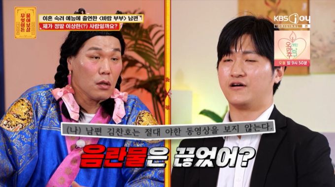 놀란 서장훈은 "아예 안 봐야지!"라며 소리를 질렀고 바람 남편은 "가끔 흔들릴 순 있잖아요"라며 사실상 음란물을 찾아보진 않았다고 설명을 더했다.