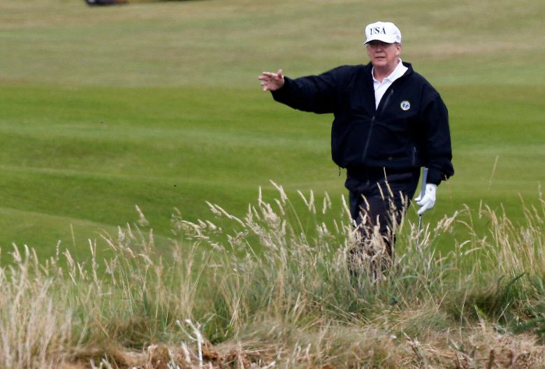도널드 트럼프 미국 대통령이 2018년 자신 소유의 스코틀랜드 턴베리 골프장을 방문했을 때 모습. /로이터 연합뉴스 |