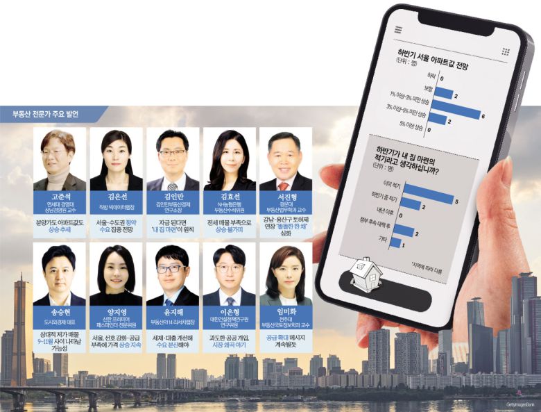 또 전문가 10명 중 7명은 하반기가 '내 집 마련의 적기'라고 답했다. 5명은 '이미 적기'라는 견해를 제시했고 2명은 '하반기 중 적기가 올 것'이라고 전망했다.