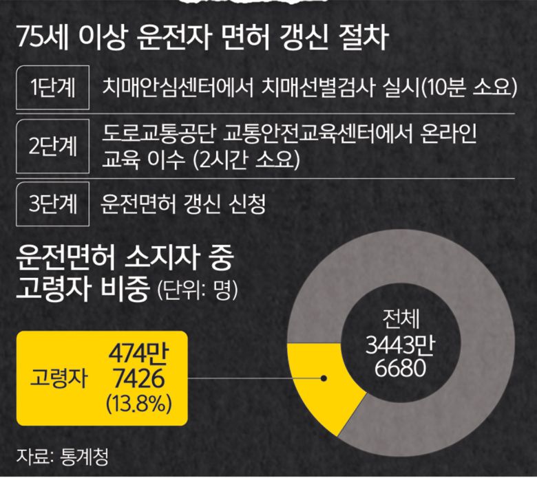 75세 이상 운전자는 전국 보건소 치매안심센터에서 10∼15분 정도 소요되는 인지선별검사(CIST)를 받은 뒤, 운전면허시험장에서 온라인 교통안전교육을 이수해야 한다. 하지만 시청역 참사에서 가해차량 운전자였던 차모씨는 사고 당시 68세로 CIST 검사 대상이 아니었다.