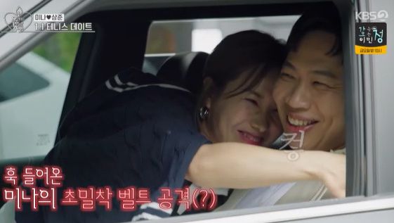 이후 두 사람은 테니스 데이트를 함께했다. 미나는 원래 다른 출연자를 예상했지만, 이상준의 깜짝 등장에 놀라며도 “그래도 좋다”고 웃어 보였다. 이어 이상준은 “안전벨트를 해달라”며 미나에게 가까이 다가갔고, 테니스복 차림의 미나에게 “지금 예쁘다”는 플러팅까지 던졌다. 이에 미나는 “저 지금 예뻐요?”라며 수줍게 반응, 핑크빛 분위기가 무르익었다.