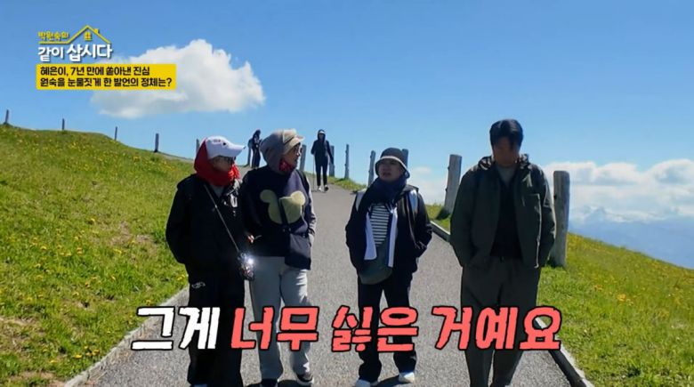 자신의 인생과 아픔을 돌아보게 된 네 사람. 혜은이는 "오늘은 또 다른 즐거움과 행복이 있는 날"이라고 말했다. 박원숙도 "스위스에 온 게 그냥 관광이 아니었다. 자신을 돌아보게 된다. 어쩌다 보니 내면 여행"이라고 공감했다.