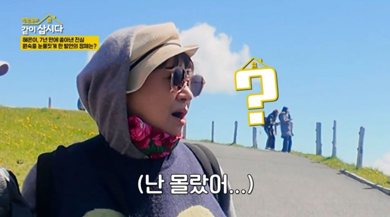 혜은이가 7년 만에 속마음을 고백하자 박원숙은 놀라 눈물을 흘렸다. 그는 "얘가 힘든 걸 알았지만 내 눈에는 이 순간을 남기고 싶어서 해줬는데 민폐였나. 나는 좋아서 해준 건데 '그럴 수 있겠다' 또 느꼈다. 요만큼도 싫겠다라는 생각은 안 했다"라며 자신의 행동을 돌아봤다.