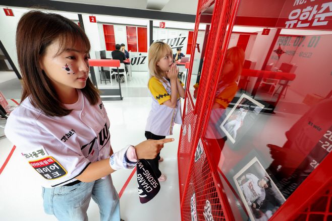 kt wiz 특화매장은 통신 상담 및 가입이 가능한 'KT 매장영업존'과 팬 전용 체험 공간인 '위즈 공간'으로 구성됐다. 위즈 공간에는 △kt wiz 선수들의 명장면을 담은 갤러리 △은퇴 선수들과 첫 우승을 기념하는 메모리얼월 △선수들이 실제 착용한 용품 전시존 △굿즈 전시·포토존 △치어풀존 등 다양한 콘텐츠가 마련됐다.