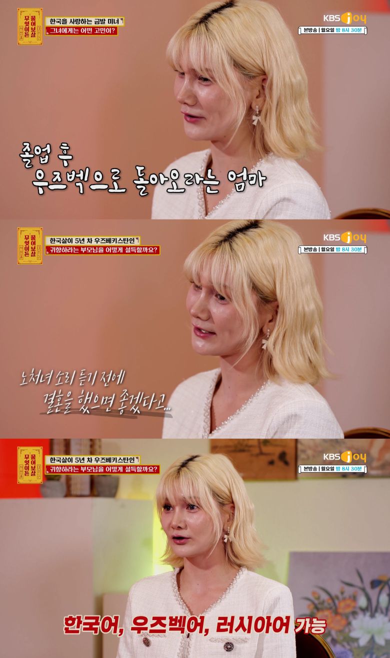 이어 "한국을 너무 좋아해서 한국에 와서 생활하고 있는데, 이번에 졸업을 한다. 졸업하자마자 엄마가 우즈베키스탄으로 돌아오라고 하셔서 고민이다"라고 털어놨다.