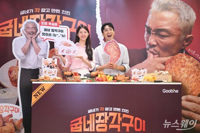오븐요리 프랜차이즈 굽네치킨을 운영하는 '지앤푸드'가 1일 오전 서울 마포구 굽네플레이타운에서 추성훈과 함께하는 신제품 '굽네 장각구이'를 선보이고 있다. 사진=강민석 기자 kms@newsway.co.kr