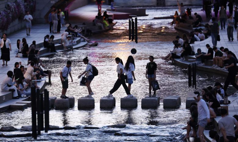 서울에 올해 처음으로 열대야가 기록된 30일 서울 청계천에서 시민들과 외국인 관광객들이 더위를 식히고 있다.열대야는 밤 사이(전날 오후 6시 1분부터 다음날 오전 9시까지) 기온이 25도 이상으로 유지되는 현상이다. 2025.6.30/뉴스1