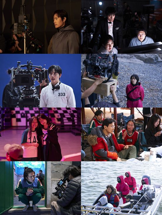 제작진들과 함께 촬영한 장면을 모니터링하고 있는 이병헌의 모습에서는 자신의 예상과는 완전히 다른 생각을 가지고 게임에 임하는 기훈의 모습을 지켜보는 프론트맨의 복잡하고 깊은 감정선이 이병헌의 열정과 노력으로 완성될 수 있었음을 짐작하게 한다. 명기(임시완), 대호 역에 완벽히 몰입한 임시완과 강하늘의 모습은 마지막까지 눈을 뗄 수 없게 만든 두 캐릭터의 서사를 떠올리게 만든다.