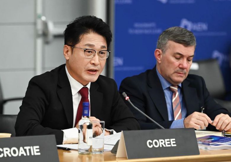 이호현 산업통상자원부 제2차관(왼쪽)이 에너지정책실장 시절인 지난해 9월19일 프랑스 파리 경제협력개발기구(OECD) 컨퍼런스센터에서 열린 ‘OECD NEA 제2차 원자력 장관회의’에서 발언하고 있다. 산업통상자원부 제공 |