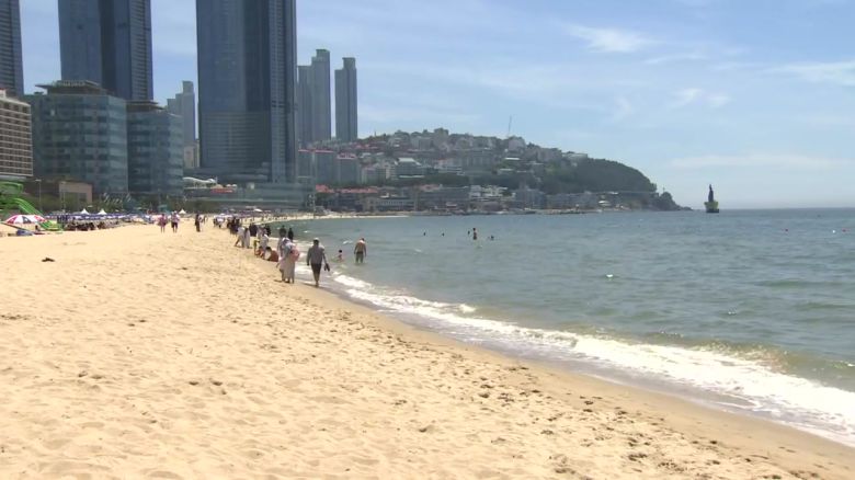 부산 해운대해수욕장에 나와 있습니다.