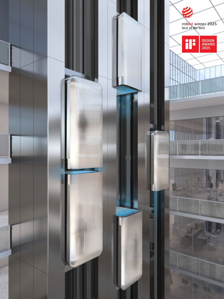 레드닷 어워드에서 수상한 티케이엘리베이터의 TWIN 엘리베이터. 뉴 TWIN 콘셉트 디자인이 적용됐다. /티케이엘리베이터 제공 |