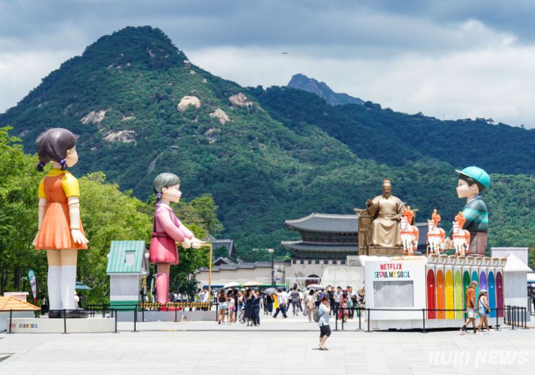 서울시는 지난달 28일부터 오는 6일까지 광화문광장에서 넷플릭스 오리지널 시리즈 오징어게임을 활용한 팝업 행사를 열고 있다. 서울시와 넷플릭스는 오징어게임을 계기로 서울을 찾은 관광객이 도심 속 K콘텐츠 촬영지를 방문할 수 있도록 이벤트존을 마련했다.