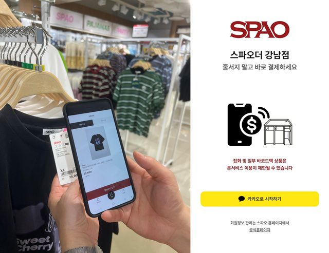 이번 스파오더 정식 도입을 기념해 스파오는 카카오페이와 제휴 이벤트를 진행한다. 카카오페이 결제를 통해 스파오더 서비스를 이용하는 고객은 선착순으로 특별 할인 혜택이 제공된다.